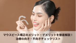 ▶ マウスピース矯正についての詳細は、「マウスピース矯正のメリット・デメリットを徹底解説!治療の向き・不向きチェックリスト」をご覧ください。